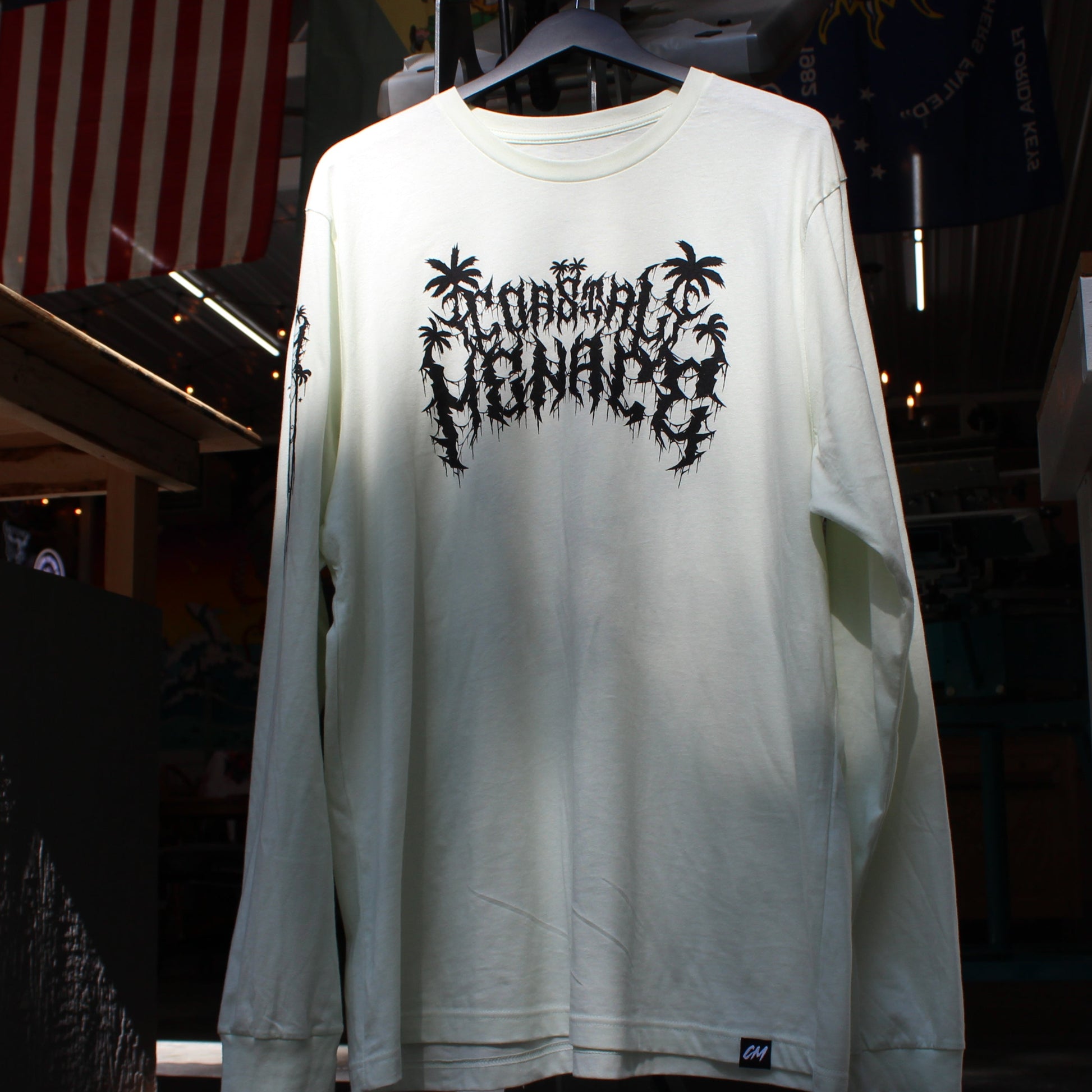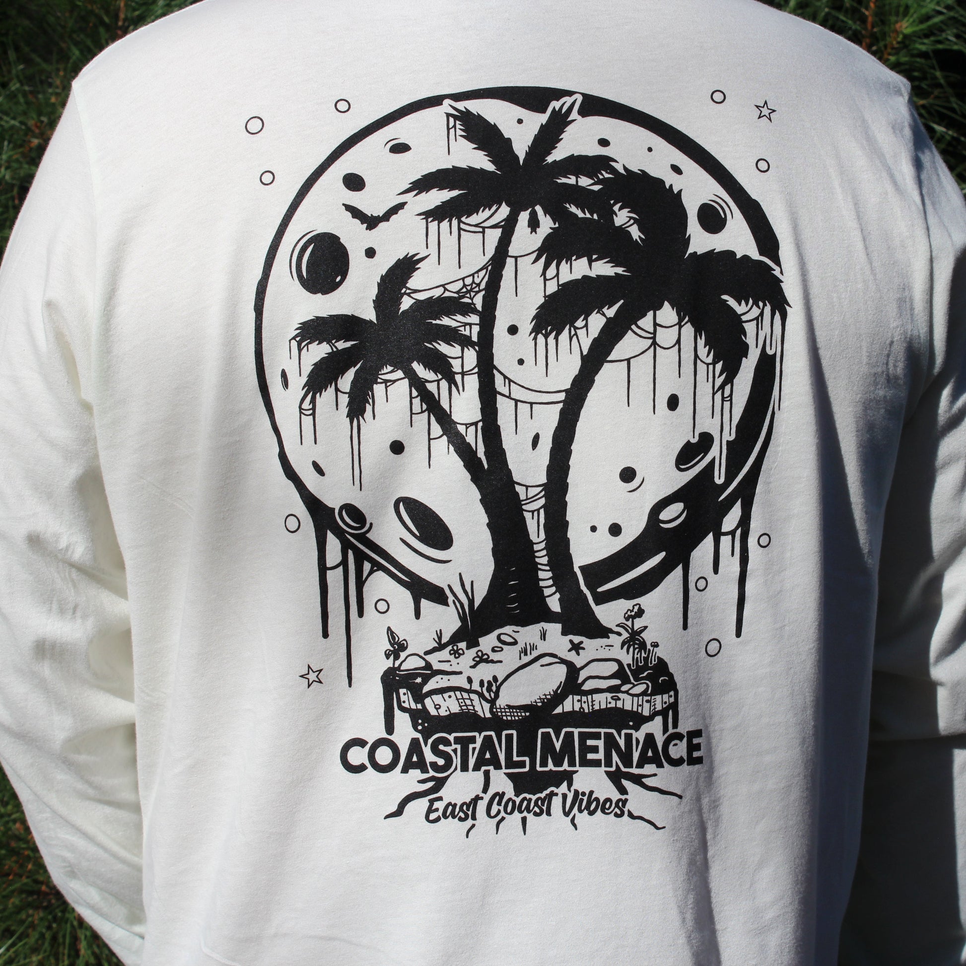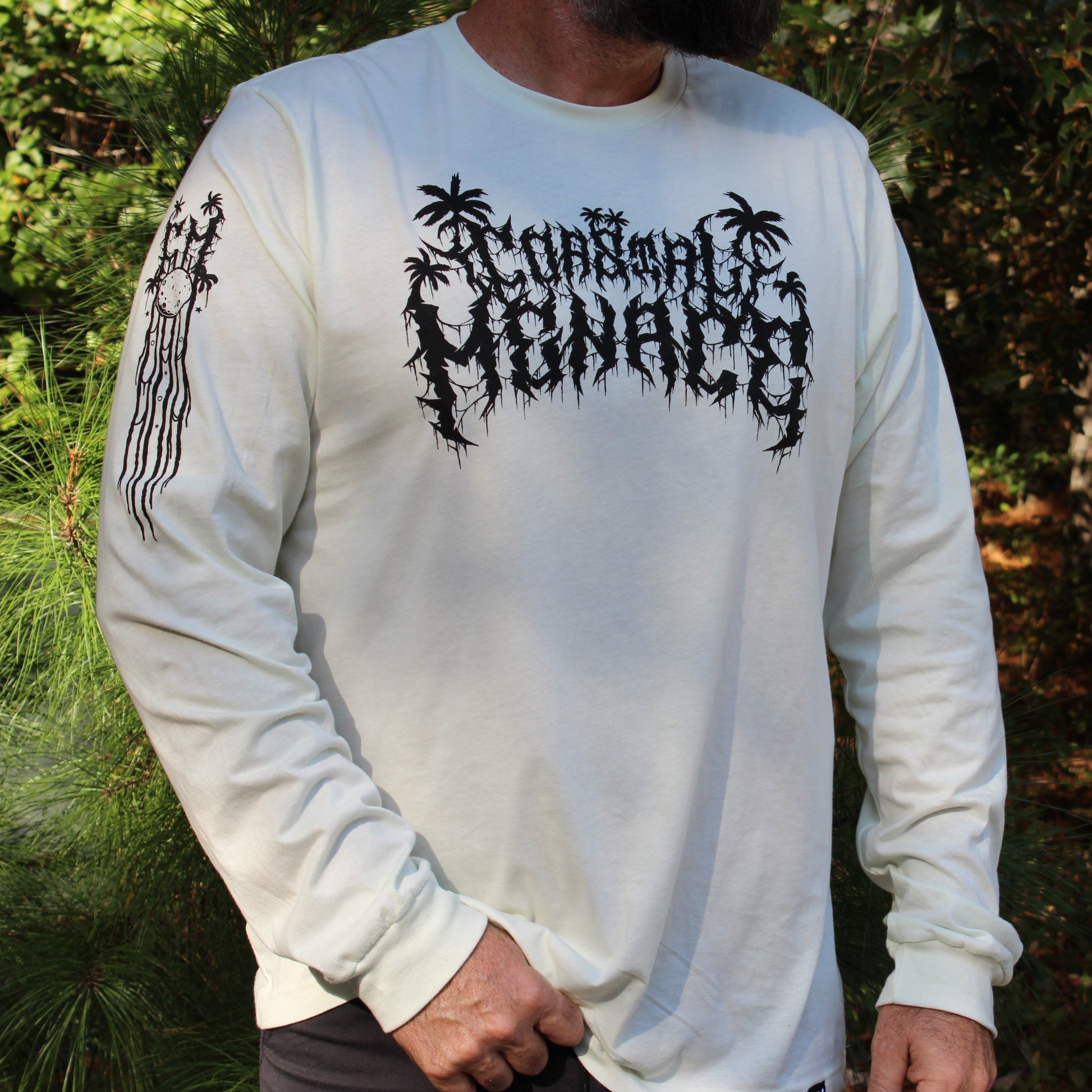Big moon. Dripping palms. Doom lettering. The Doom Moon Long Sleeve Tee is pure heavy tropical nonsense combining moon lit walks on the beach with big mosh pit energy.